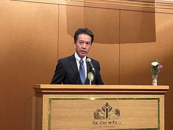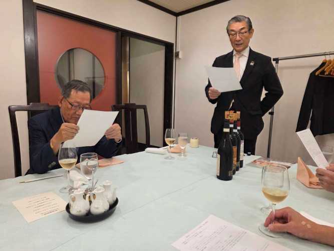 0.会長・幹事懇談会 織田英正ガバナー、二宮邦江ガバナー補佐、田村真道、森本太一郎随行員、柳澤パストガバナー、西森会長、土居副会長、野町幹事、高橋副幹事